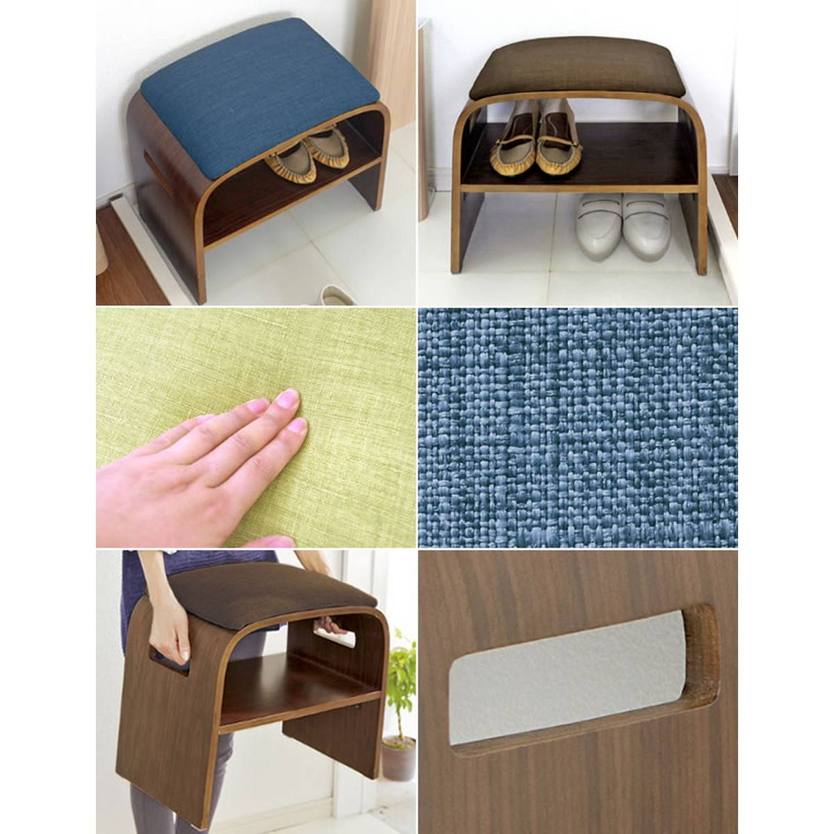 天然木目 曲げ木 玄関チェア (ブラウン)