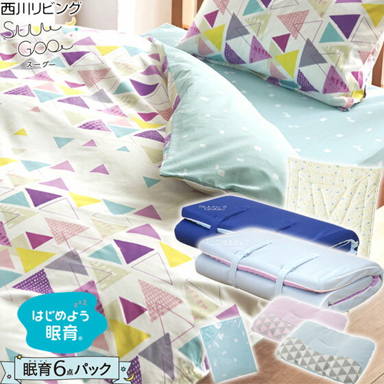 布団セット 子供 ジュニア 西川 シングル suu goo 眠育 6点パック 6点セット スーグー ジュニアサイズ 子供用 掛布団 マットレス 敷布団 枕 カバー 男の子 女の子 キッズ 送料無料 新生活